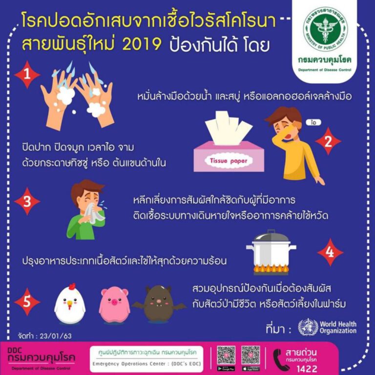 “กองระบาดวิทยา กรมควบคุมโรค กระทรวงสาธารณสุข” ได้เผยแพร่ วิธีป้องกันการติดเชื้อไวรัสโควิด-19 (โคโรน่า) ดังนี้ 1. สวมหน้ากากอนามัย และไม่คลุกคลีกับผู้ป่วยโรคทางเดินหายใจ 2. ปิดปาก ปิดจมูก เวลาไอ จาม ด้วยกระดาษทิชชู หรือต้นแขนด้านใน 3. หมั่นล้างมือให้สะอาดอยู่เสมอด้วยน้ำ และสบู่ หรือแอลกอฮอล์เจลล้างมือ ไม่นำมือมาสัมผัสตา จมูก ปาก โดยไม่จำเป็น 4. หลีกเลี่ยงการไปตลาดที่ขายซากสัตว์ป่าหรือที่ม