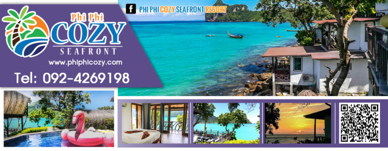 พีพี โคซี่ ซีฟอนต์ รีสอร์ท Phi Phi Cozy Seafront Resort Tel: 092-4269198 www.phiphicozy.com Facebook : Phi Phi Cozy Seafront Resort >>Location Phi Phi Cozy Seafront Resort<<