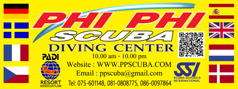 พีพี สคูบ้า Phi Phi Scuba Diving Center Tel: 075-601148, 081-0808775, 086-0097864 www.ppscuba.com Email : ppscuba@gmail.com >>Location Phi Phi Scuba Diving Center<<