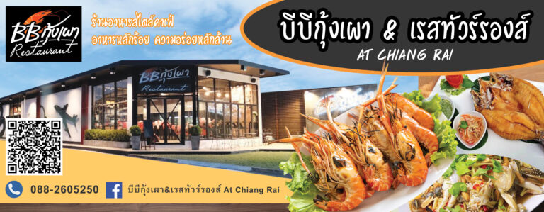 บีบีกุ้งเผา&เรสทัวร์รองส์ At Chiang Rai Tel : 088-2605250 Facebook : บีบีกุ้งเผา&เรสทัวร์รองส์ At Chiang Rai Location : บีบีกุ้งเผา&เรสทัวร์รองส์ At Chiang Rai