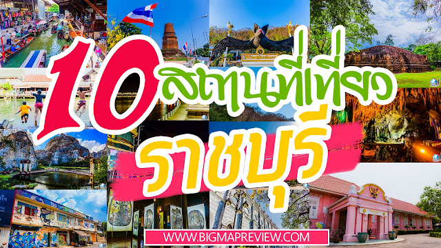 แนะนำ10ที่เที่ยวราชบุรี "คนสวยโพธาราม คนงามบ้านโป่ง เมืองโอ่งมังกร  วัดขนอนหนังใหญ่ ตื่นใจถ้ำงาม ตลาดน้ำดำเนิน เพลิงค้างคาวร้อยล้าน ย่านยี่สกปลาดี" คำขวัญจังหวัดราชบุรี สวัสดีครับ วันนี้บิ๊กแมพรีวิว มีความปีติใจเป็นอย่างมาก ที่จะขอนำเสนอ 10 สถานที่ท่องเที่ยวเมืองราชบุรี ที่ใครๆมาแล้วไม่ควรพลาด และแต่ละสถานที่นั้น อยู่ห่างจากตัวเมืองไม่ไกลมากนัก เพื่อให้สะดวกต่อการเดินทาง ภายในเวลาที่จำกั